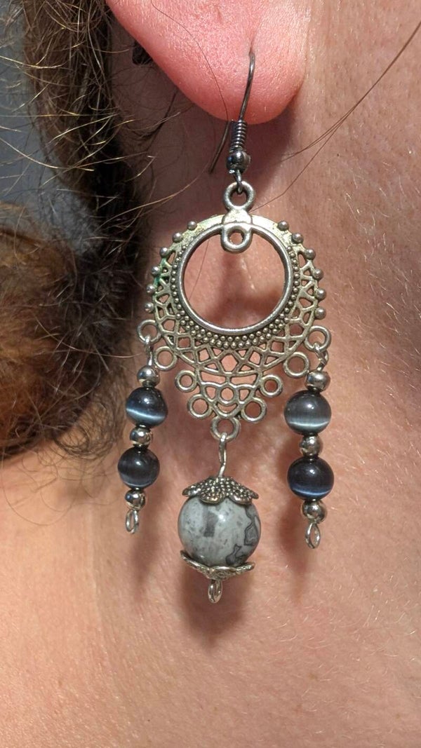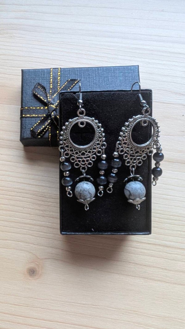 Boucles d'oreille faites main. Métal noble et pierres naturelles.