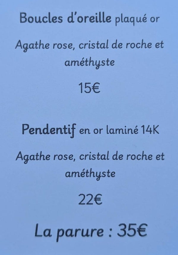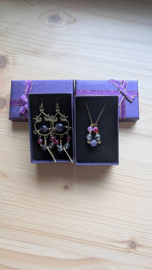 Parure entièrement faite main en métal noble et pierres naturelles.